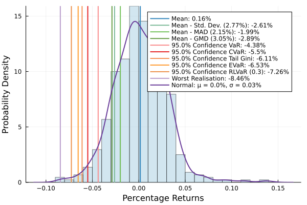 PortfolioOptimisers.jl is an attempt at providing as many of these as possible under a single banner. We make extensive use of Julia's type system, module extensions, and multiple dispatch to simplify development and maintenance.