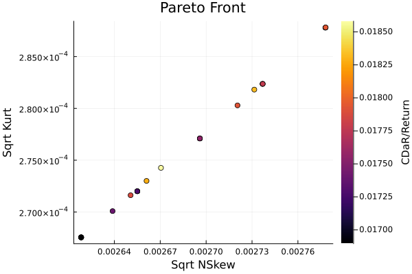title = "Pareto Front", xlabel = "Sqrt NSkew", ylabel = "Sqrt Kurt",