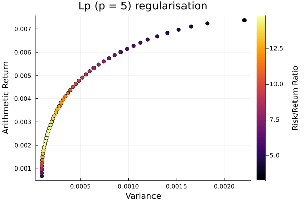 title = "Lp (p = 5) regularisation", xlabel = "Variance",